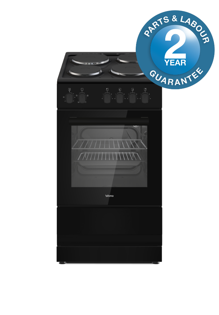 This freestanding 50cm cooker is designed to sit directly on the kitchen floor and has two adjustable feet on the front to ensure a sturdy install.